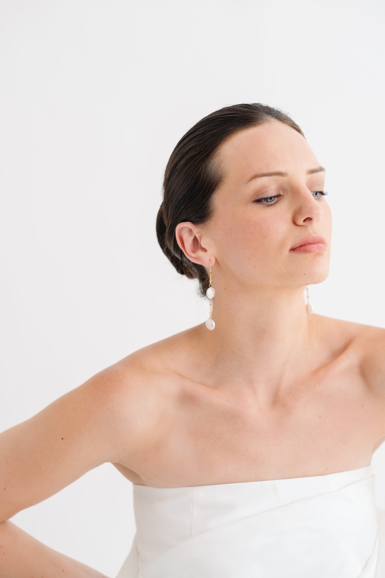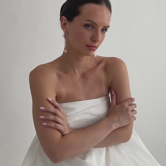 Add a touch of timeless elegance to your bridal ensemble with our Freshwater Coin Pearl Droplet Earrings. Featuring luminous, flat coin pearls that catch the light with every movement, these delicate droplet earrings are the epitome of understated beauty. Their clean lines and organic shimmer make them a versatile choice perfect for classic, modern, or bohemian bridal styles. Lightweight and graceful, they offer effortless sophistication for your walk down the aisle and every special moment beyond.