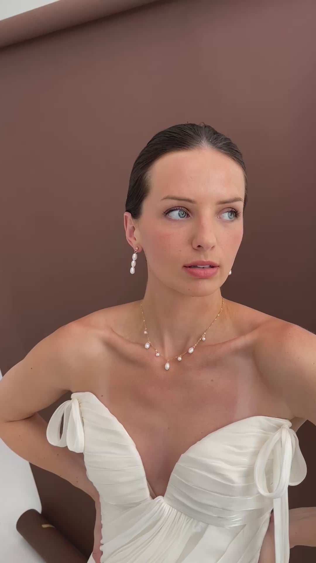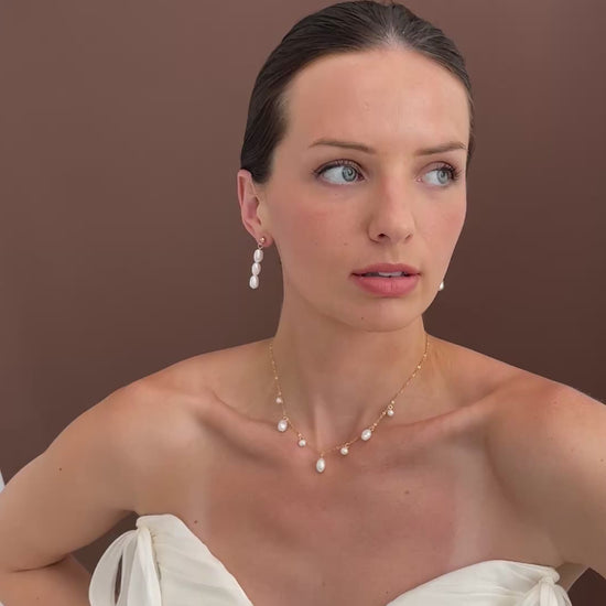 Enhance your bridal look with our dainty pearl droplet necklace. With a delicate chain and elegant pearl droplets in a variety of sizes, this necklace exudes sophistication and charm. Perfect for adding a subtle touch of femininity to any outfit, this necklace is a must-have for any bride-to-be.